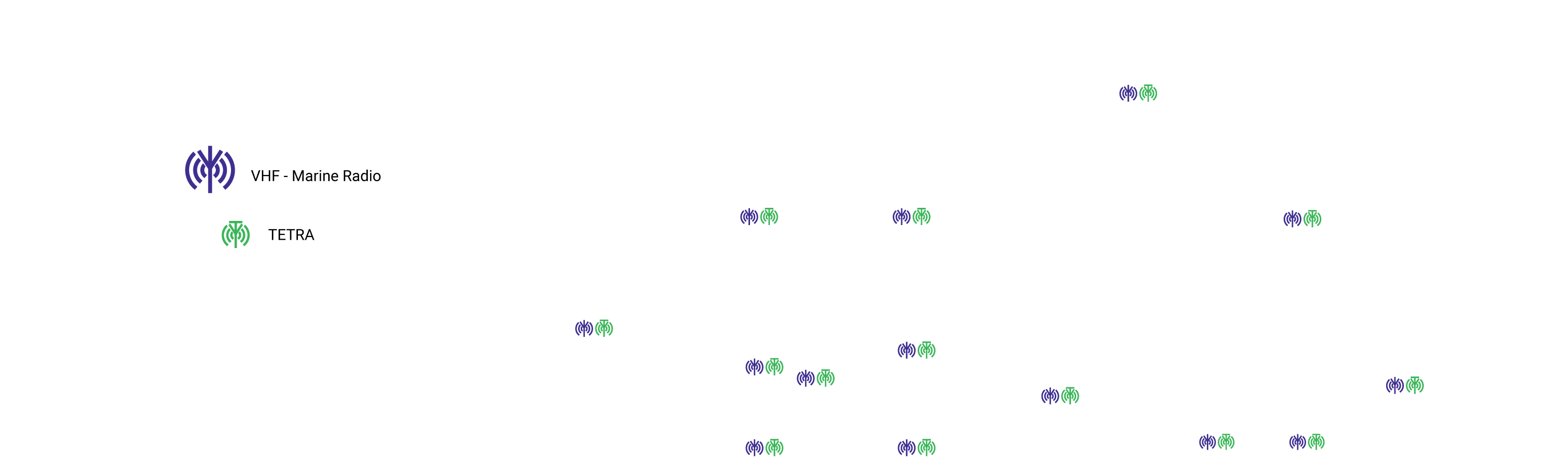 • Tracking of Assets or personnel passing through areas monitored by location beacons in each tower, vessel or placed in areas of specific interest.